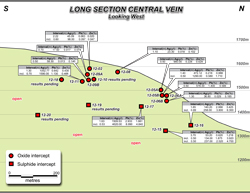 - Bonanza grades of 4,620 g/t silver (134.8 opt) over 0.53 m has been intersected from sulphide mineralization and 1,590 g/t silver (46.4 opt) over 0.70 m from oxide mineralization;