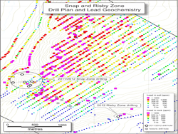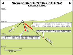 Regional exploration drilling has successfully tested several new high-grade epithermal silver occurrences within the district and confirmed that the 8 sq km Snap Zone silver-lead-zinc-tin soil geochemical anomaly has the potential to host Keg style bulk-tonnage mineralization.