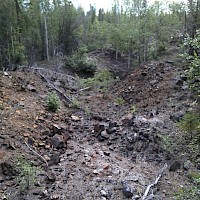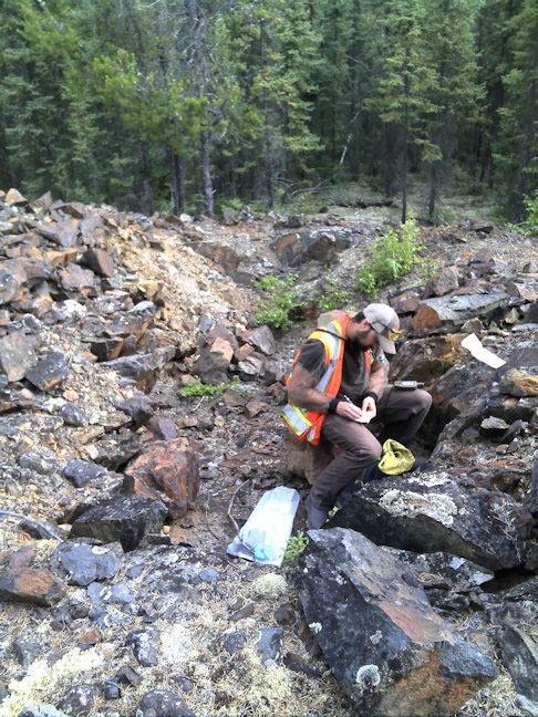 Historic work by Cominco Ltd., Freeport McMoRan Gold Company, and Aber Resources Ltd. centred on a steeply east-plunging package of folded sulphidized iron formation containing pyrite, pyrrhotite, chalcopyrite and arsenopyrite. Three historic resources are reported on the property in the NWT Minerals Database (NORMIN 085OSW0001). On the south limb of the fold, Aber Resources Ltd. reported a resource of 100,000 tons at 0.3 ounces per ton gold in their annual report while on the north limb of the fold, Energy Mines and Resource Canada Mineral Bulletin MR223 records a mineral inventory of 43,900 tonnes at 4.39 grams per tonne gold in the Bugow Zone and 18,100 tonnes grading 7.89 grams per tonne gold in the Andrew North Zone. The reader is cautioned that these resources are historic in nature, do not comply with National Instrument 43-101 and have not been verified by Silver Range. Sampling of the Bugow and Andrew North showings by Silver Range in 2016 returned check samples assaying up to 13.2 g/t gold with 5 of 15 samples collected returning assays greater than 5 g/t gold. Past exploration concentrated on the fold limbs and the inferred fold nose remains a highly prospective untested target based on data available in the public domain.