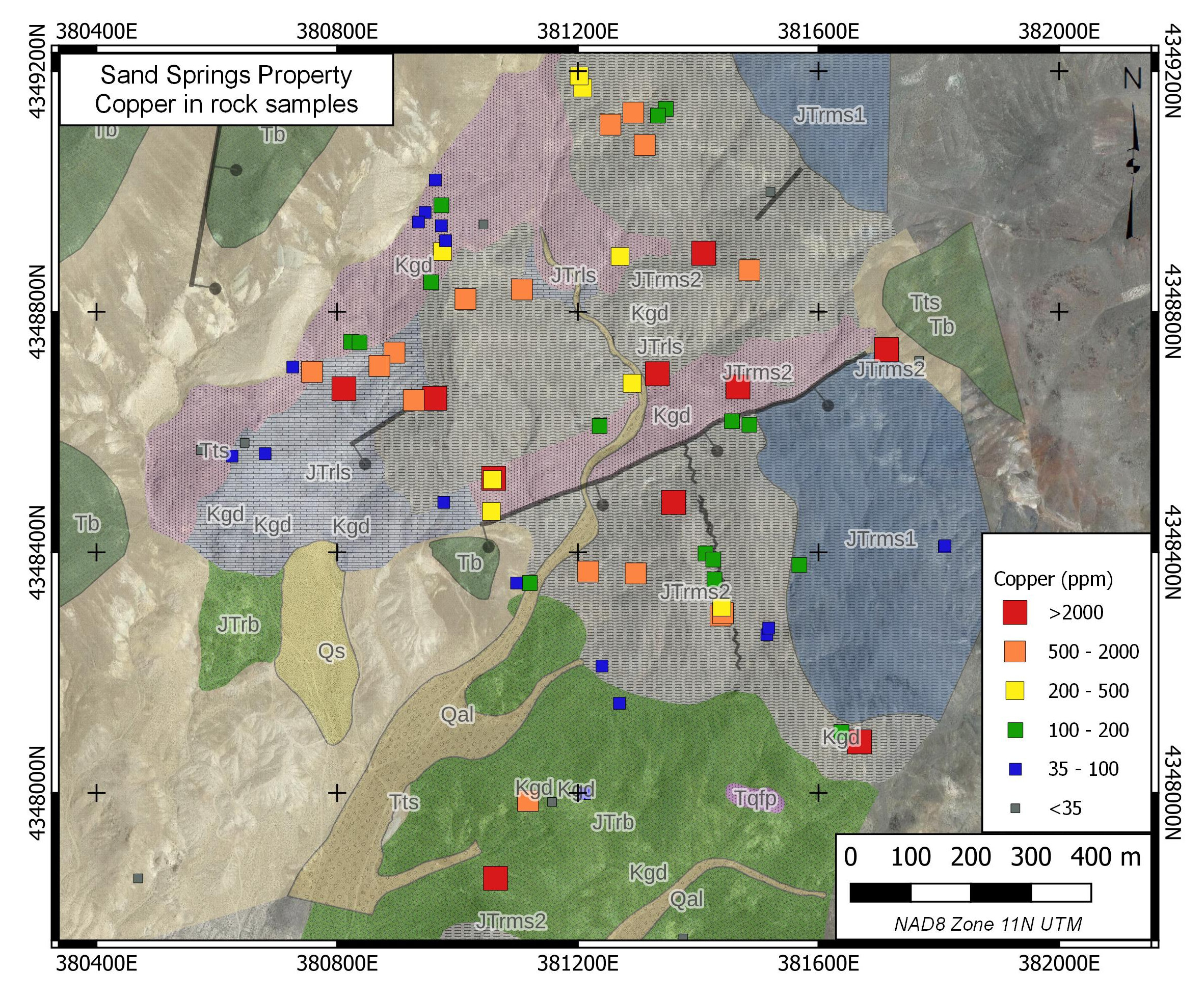 The Sand Springs Property is located 42 kilometres southeast of Fallon in Churchill County, Nevada. The claims are on BLM land with no surface impairments. The property is on the western end of the Sand Springs Mining District. The first discoveries in the district date from 1905 and production peaked around 1919. Estimated total historic production to date is approximately 21,000 oz Au and 1.2M oz Ag. Work on the Sand Springs Property dates from the 1930’s when small high-grade mining occurred. This persisted intermittently until the early 1990’s. Pegasus Gold staked and drilled the property in 1992-1993, completing 13 shallow drill holes. Best results were 3.05 m @ 4.8 g/t Au and 9.05 m @ 0.77% Cu from separate drill holes. The property was subsequently staked and explored (but not drilled) by Newcrest and Miranda Gold. Silver Range staked the property in 2021.