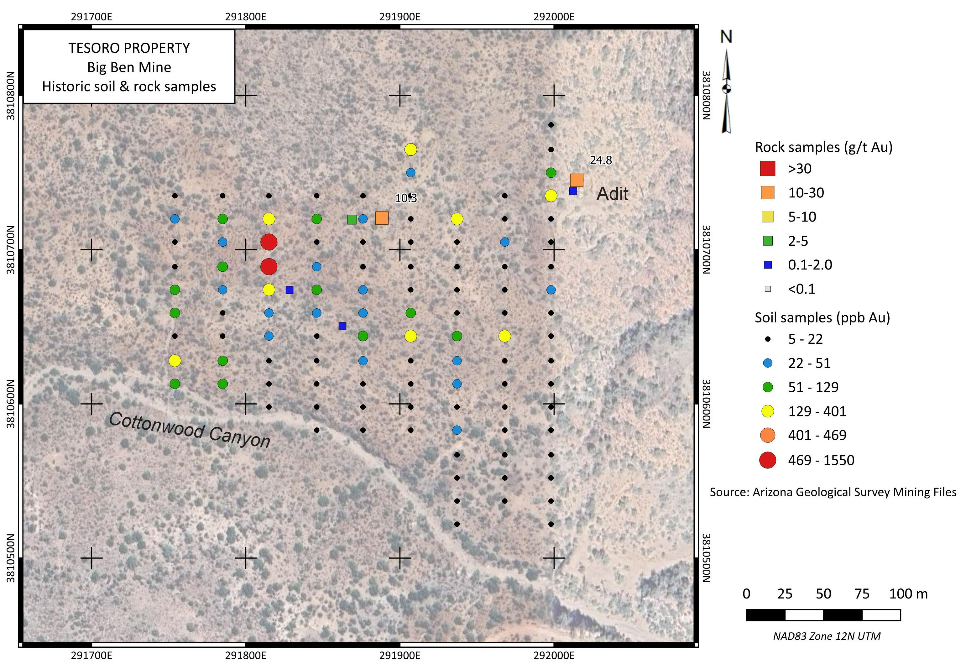 Silver Range has not performed any exploration on the Tesoro Project lands and the data reported herein is drawn from public domain summaries and data in the Arizona Geological Survey mining records database.