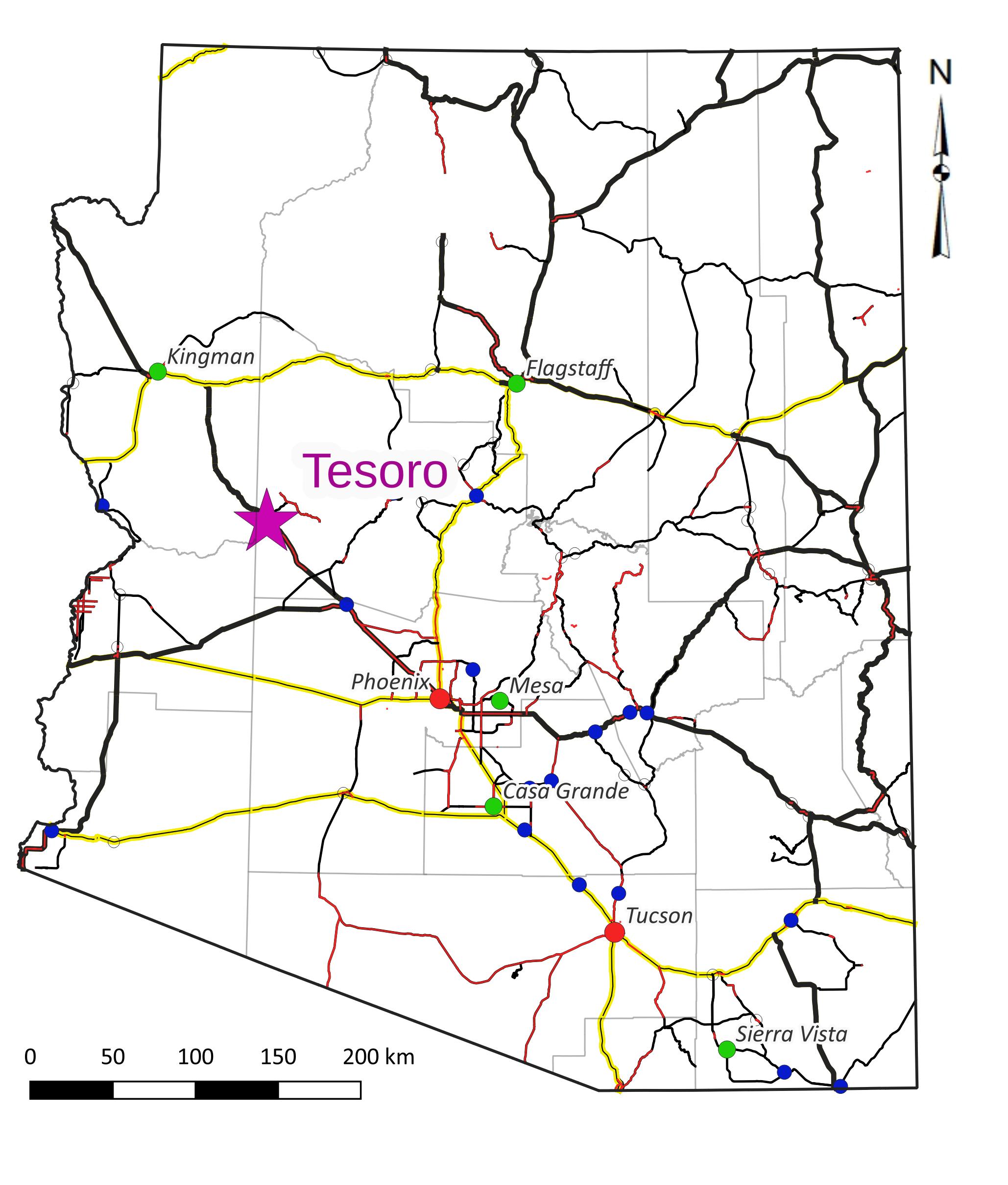 The Tesoro Project is centred at 34° 25’ N 113° 15’ W in Yavapai County, Arizona and covers all of Section 36, Township 13 N, Range 10 W and Sections 1 and 2, Township 12N Range 10W. The Property is 70 km northwest of Wickenburg. The principal showings on the property can be reached by road with a four-wheel drive high-clearance vehicle with access off Highway 93.