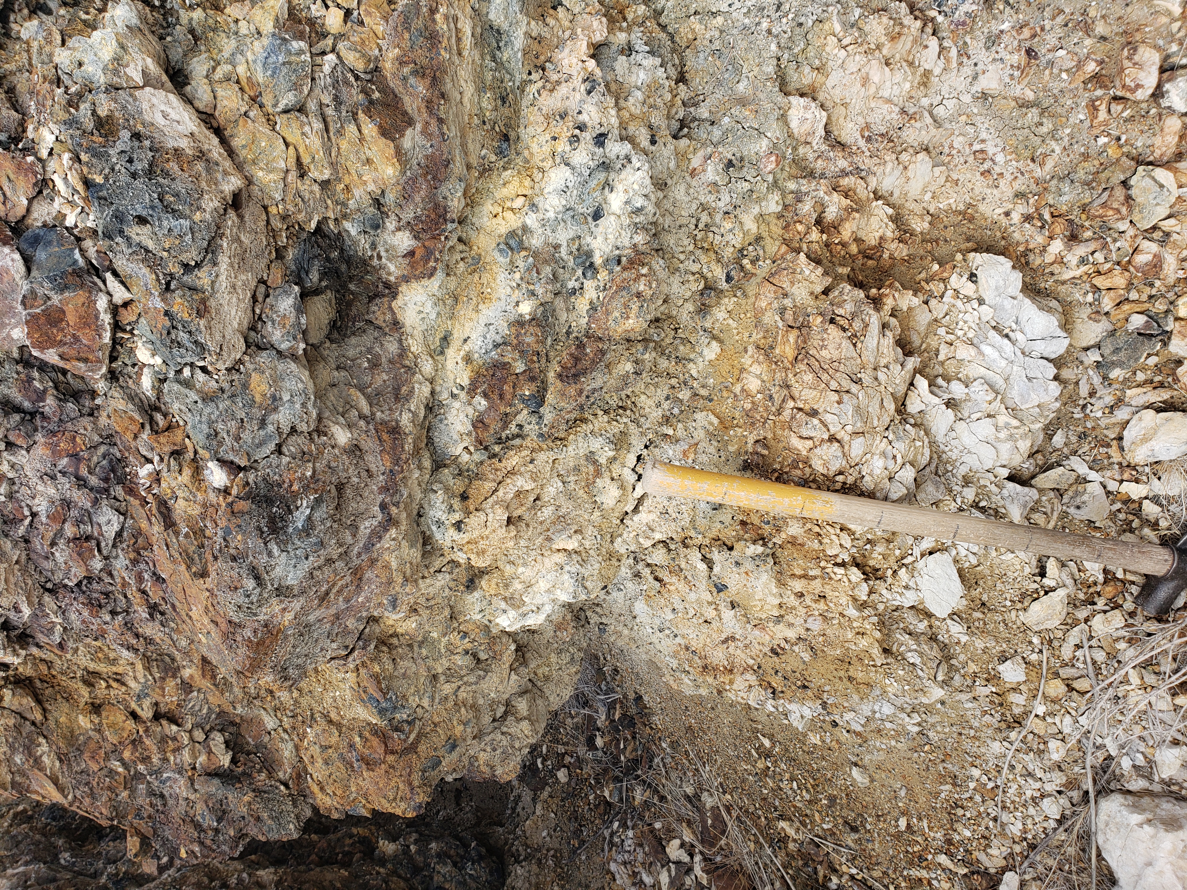 Gold mineralization at TDP may originate from any of four Oligocene caldera complexes surrounding the property. ASTER imagery indicates widespread low sulphidation style mineralization in the area including white mica throughout the Lodi Hills and alunite alteration more directly associated with gold mineralization on the property.