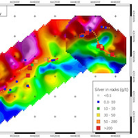The Main Trend contains veins spanning a strike length of more than 1200 metres. At the southwestern end, high grade silver mineralization occurs in the Farris Mine, high-graded during the peak of activity in the area in the period 1913-1920. Best assays from this zone returned grab samples up to 1,875 g/t Ag. Further along strike, the Black Butte Mine produced between 1962 and 1968; grab dump samples from this location returned up to 1,130 g/t Ag. The Main Trend follows a pronounced apparent resistivity break along its length. Test soil surveys over this trend in 2020 indicated that grid soil sampling would be an effective means of locating veins under cover by means of their silver-in-soil response.