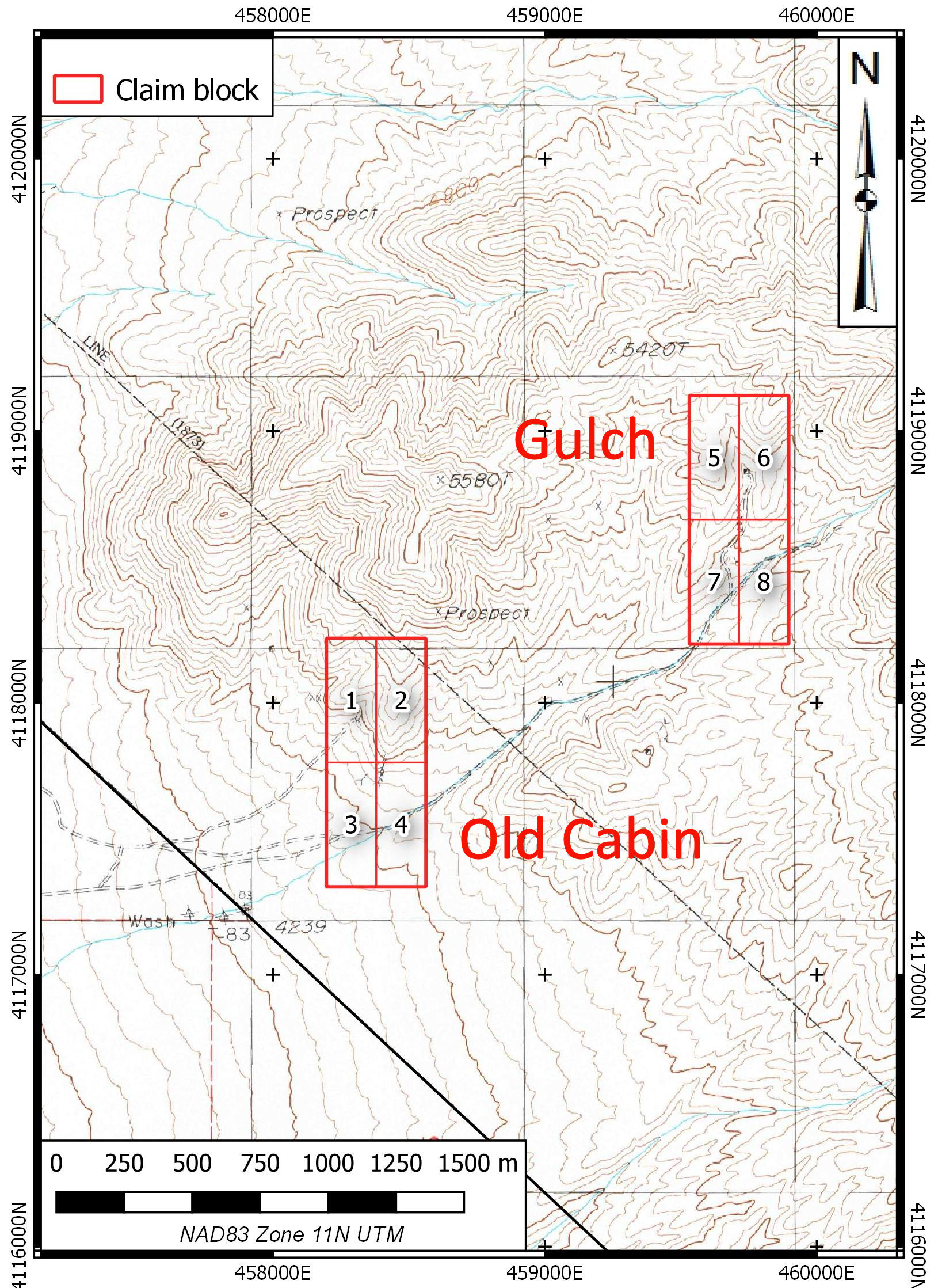 The Silver Mountain Property is centred at 37° 13’N 117° 28’ W, approximately 57 km southwest of Goldfield in Esmeralda County. The property can be reached by road with a 4x4 vehicle. The property consists of 8 claims, staked in two blocks and located in Sections 26, 27 & 34, Township 8S, Range 40E. The claims are on BLM land with no surface impairments.